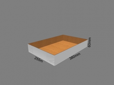 Taca przeznaczona do ciast, pączków lub innych wyrobów cukierniczych. Posiada konstrukcję, która pozwala złożyć ją bez używania kleju lub taśmy.
